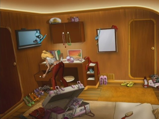 As with So Blonde, Back to the Island contains about fifteen different minigames. Some are well integrated into the story, such as catching fish to make some money or finding your way through a maze, but most of them feel out of place and artificial. Why would you need to start again from the beginning if you miss a few falling drops of water when there's plenty more around? These require quite a bit of dexterity, as they mostly involve waving the remote around, and tilting, shaking or flicking it to steer through an obstacle course, throw darts at a target or put jewels in a pendant while bugs try to push them back out again. I didn't like most of them and found the instructions lacking, which made some of them quite difficult. For others, the impreciseness of the Wiimote ruined the fun as there is little margin for error.